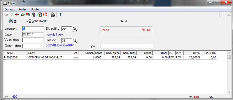 - zaduženja i razduženja skladišta i maloprodaje